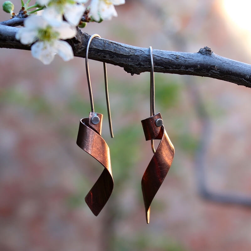 Pendientes con cierre de gancho de plata de ley. Diseño en tres opciones: plata, cobre o latón.